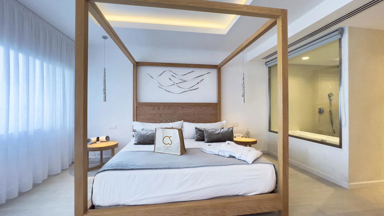 Bata de bany, sabatilles, tovalloles de platja i bossa de platja a disposició.
